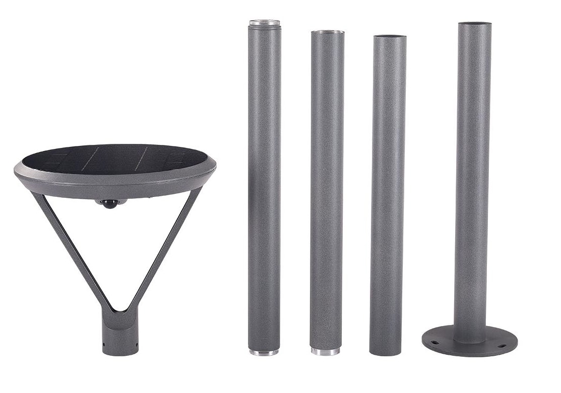Lampadaire solaire double détection IR - 3000°K - 2000Lm - Faisceau 360° - 2000Lm - Panneau solaire 6,5W - Batterie Li-ion 8000mAh/3,7V - IP65/IK10 - Kit complet inclus éclairage + 3 tubes 60cm + fixations + vis de fixation