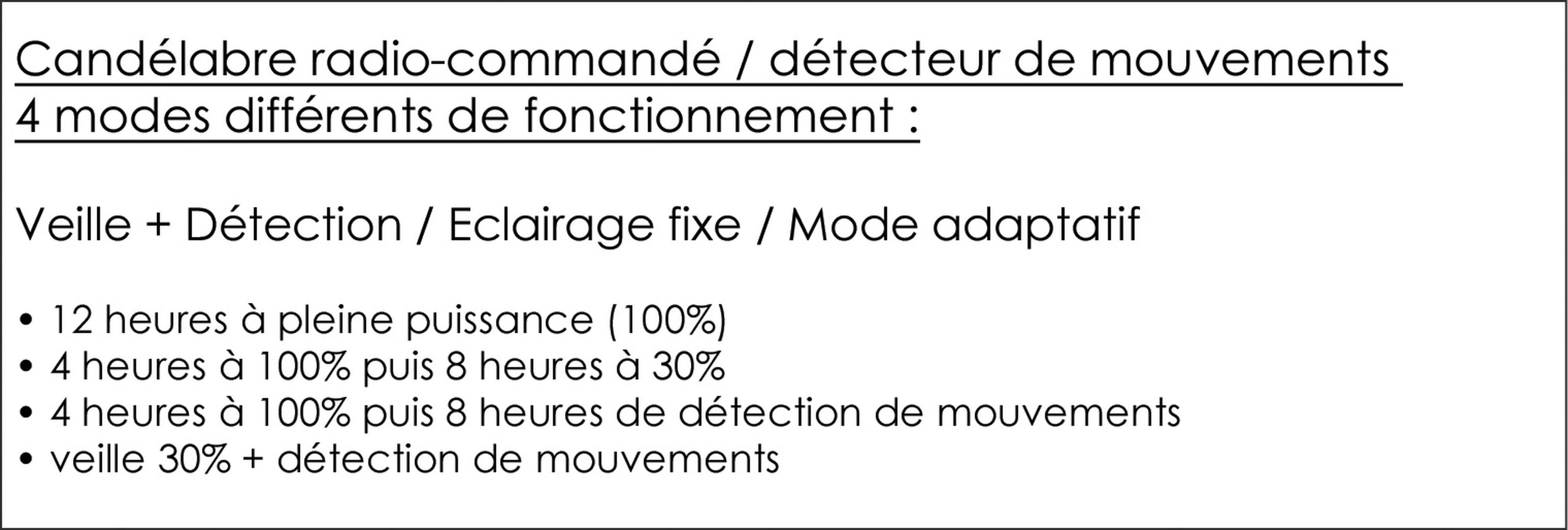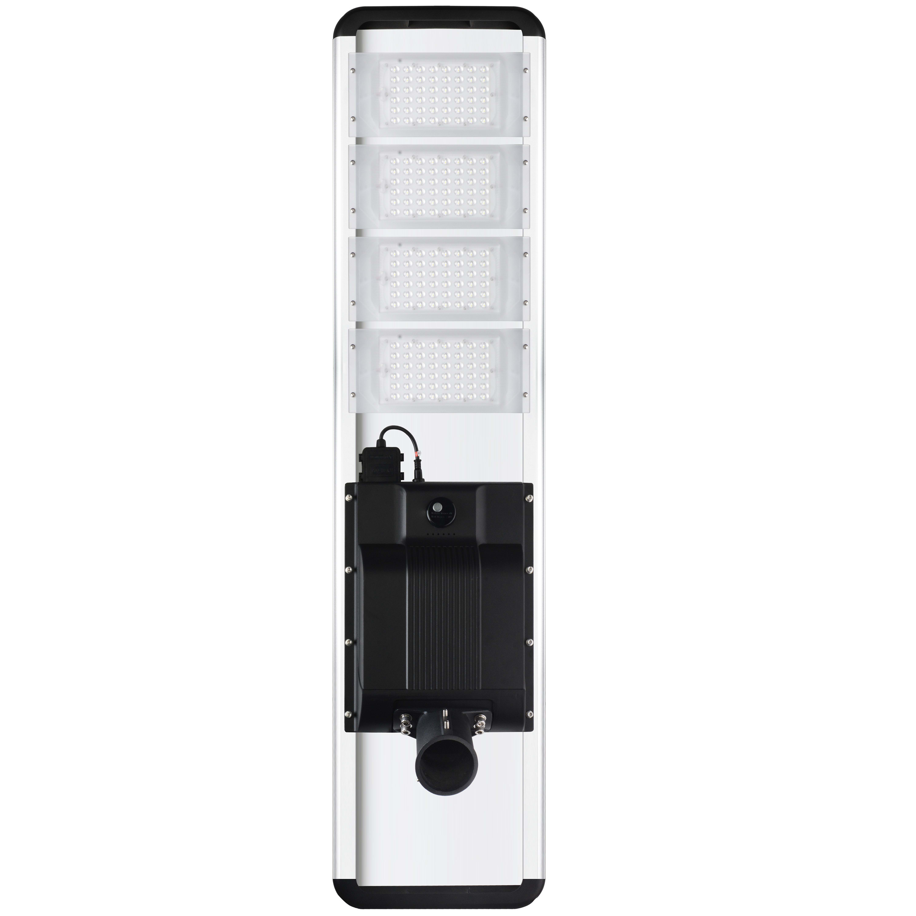 Tête de mât Atlas HYBRIDE 40W à détection télécommandé - 3000°K - Faisceau asymétrique 140° latéral/70° longitudinal - 4800 Lm - IP65/IK09 - Panneau solaire 60W - Batterie LiFePO4 230,4 Wh/12,8V - Pour mât diam 60mm - Eclairage fixe/veille
