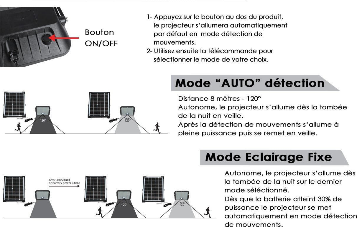 BF LIGHT - Projecteur solaire 30W détection 4800lm panneau déporté 5M - BF-SFL30IR+