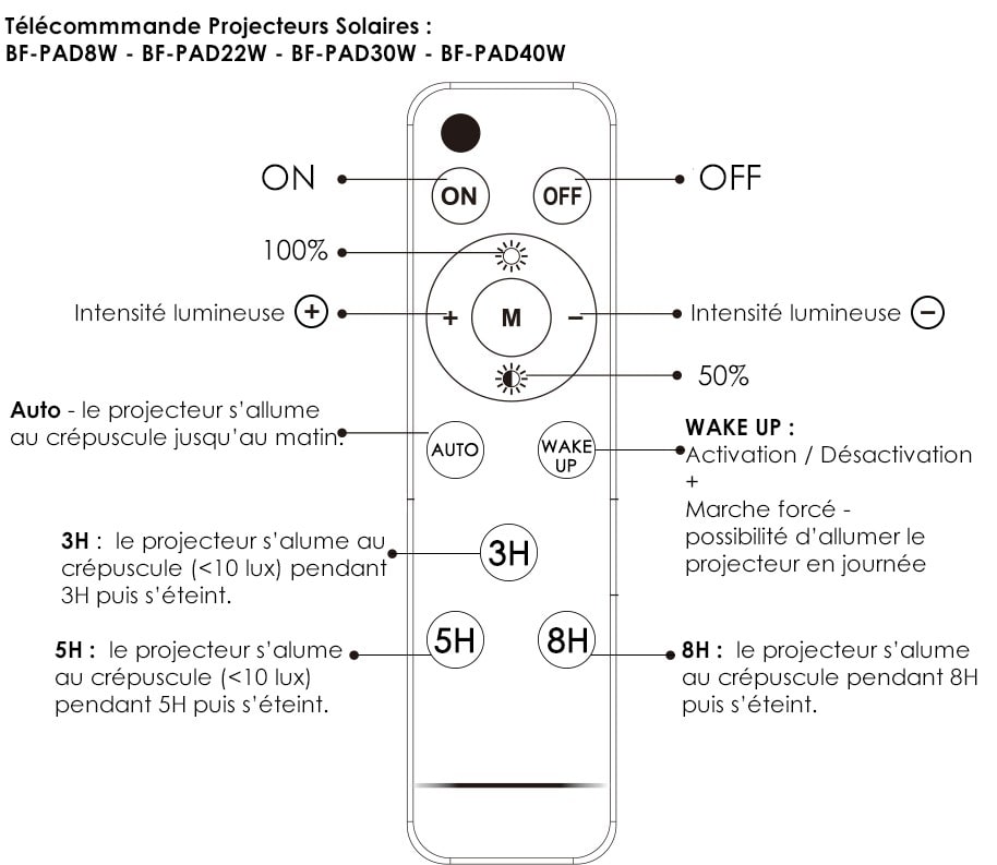 BF LIGHT - Projecteur solaire PAD 22W extra plat télécommandé - 3000°K - 1370 Lumens - BF-PAD22W