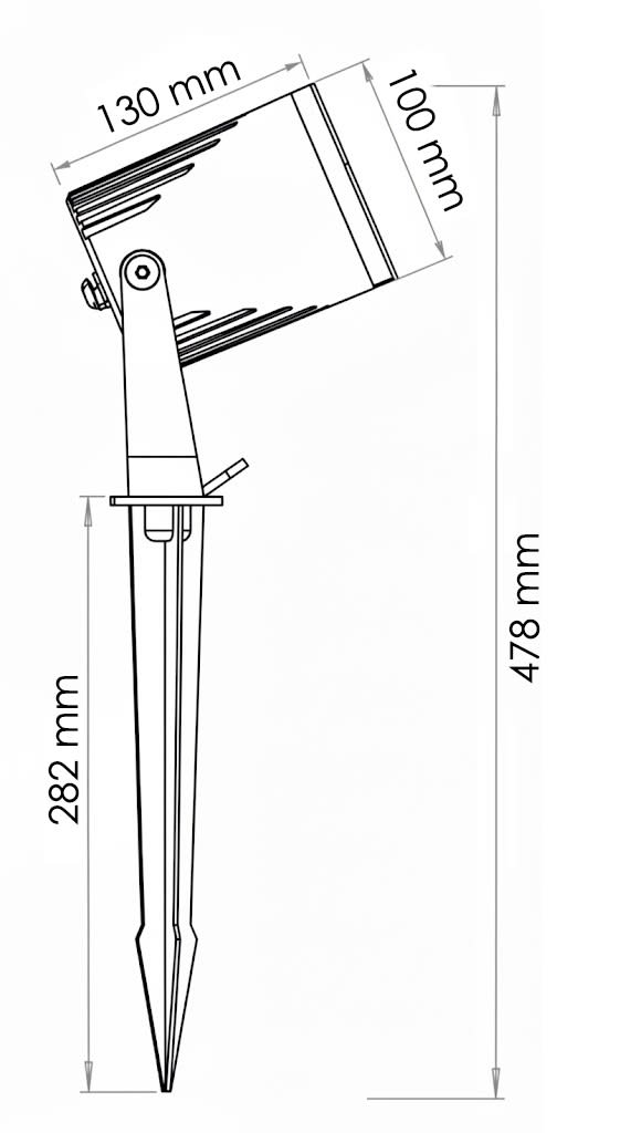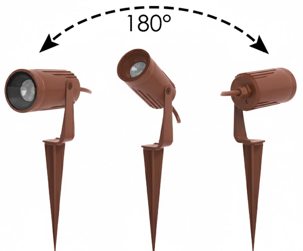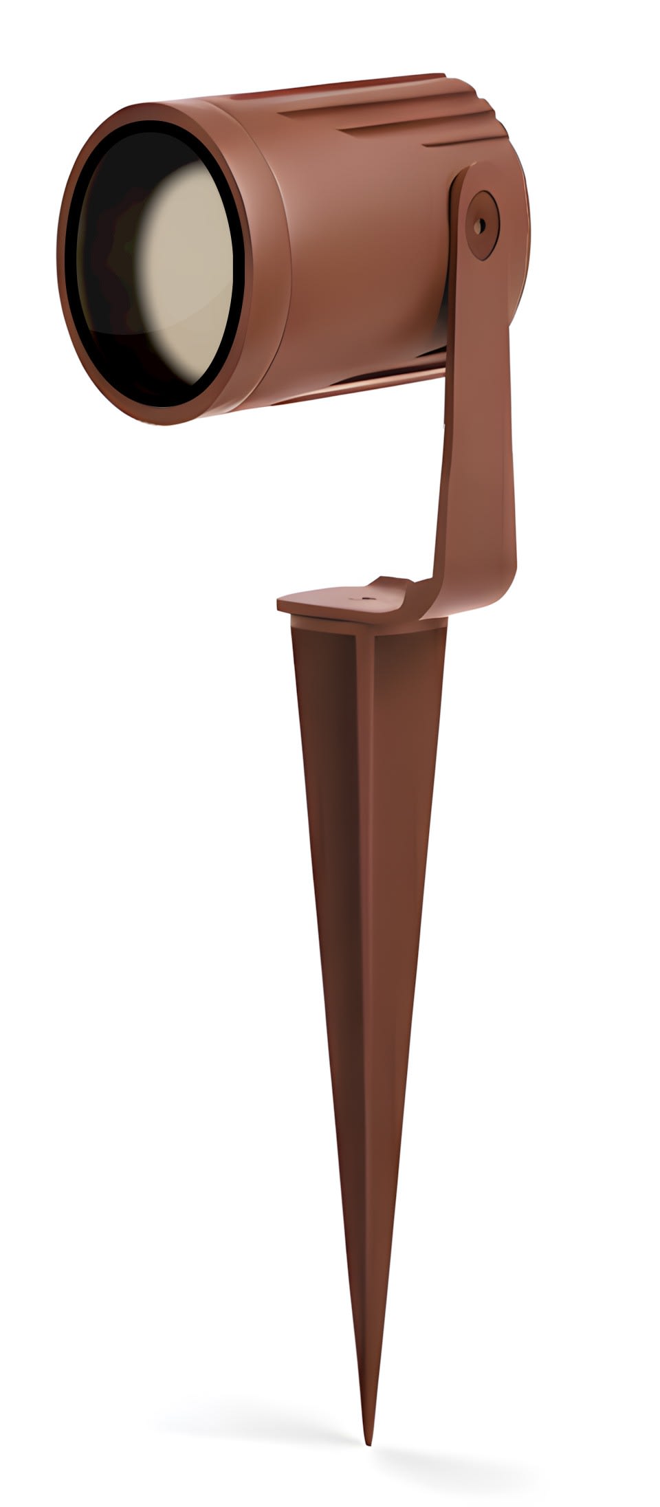 Spot sur piquet 25W - Basse luminance - 2700°K - 36° - 2300 Lm -AC100/240V - câble 1m 3G0.75mm² fournis - portée jusqu'à 12 mètres - orientable à 180° - couleur corten/rouille - possibilité d'installation en saillie - IP67/IK07