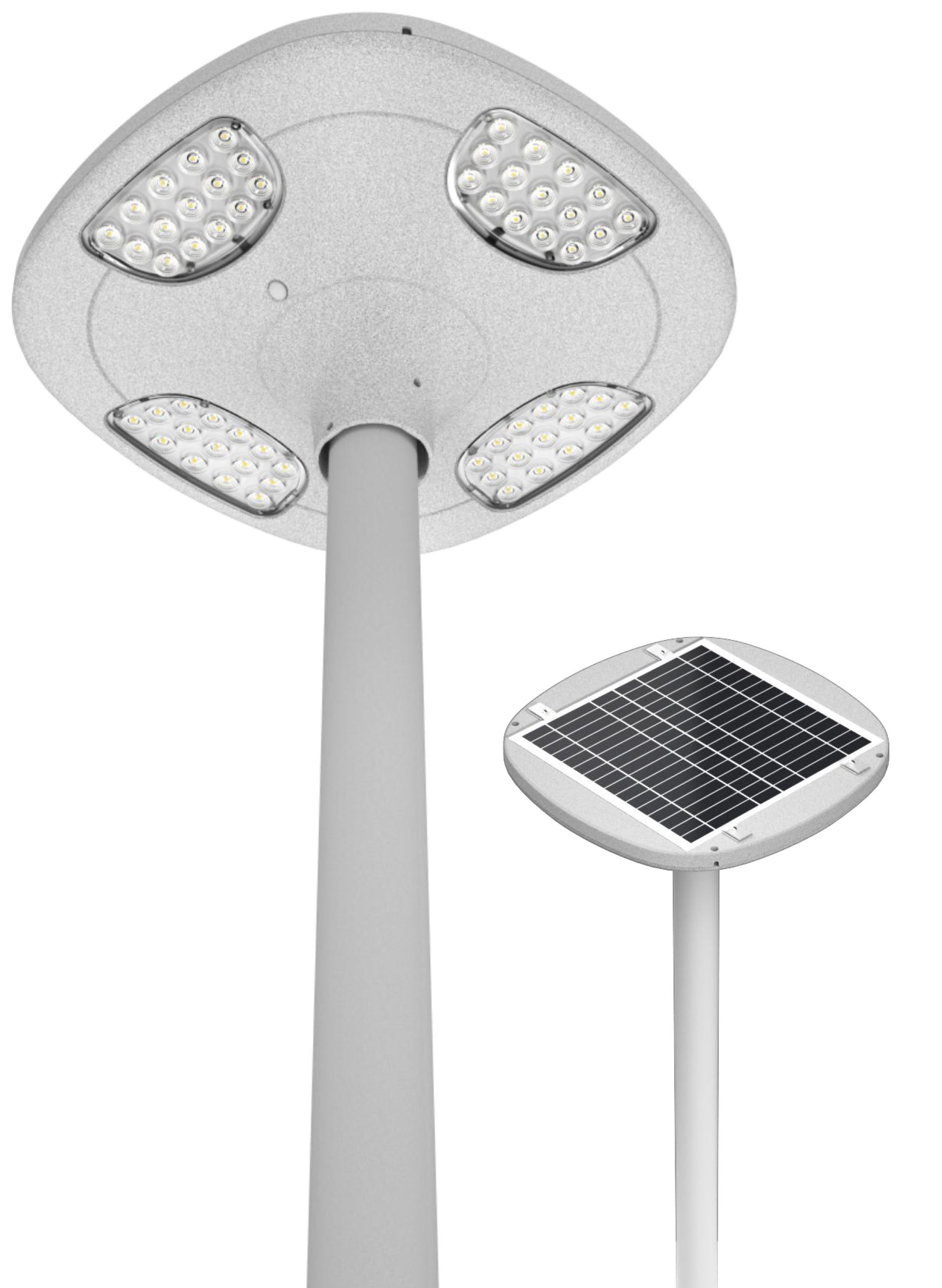BF LIGHT - Tête de mât 360° Hybride solaire et filaire 9W 2000 Lm 3000°K télécommandé - BF-HYBRID9W