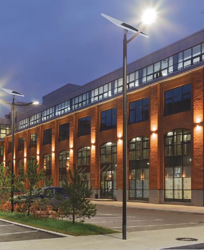 Tête de mât Laguna 60W à détection Télécommandé - 3000°K - Faisceau asymétrique 140° latéral/70° longitudinal 10400 Lm - IP65/IK08 Panneau solaire 80W Batterie Li-ion 36 Ah/11,1V Pour mât diam 60mm Panneau orientable 240°/360° verticalement