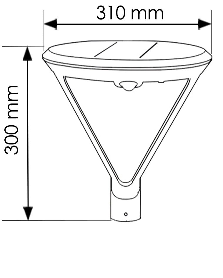 Tête de mât solaire Moorea double détection IR - 3000°K - 2000Lm - Faisceau 360° - 2000Lm - Panneau solaire 6,5W - Batterie Li-ion 8000mAh/3,7V - IP65/IK10 - inclus éclairage + fixations murale + vis de fixation