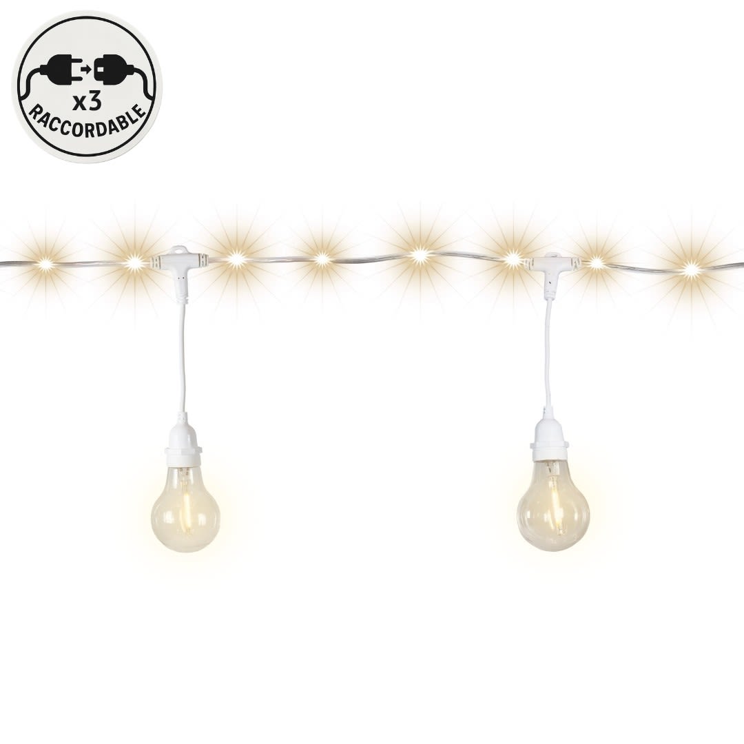 Guirl guinguette 4,50m 10 lampes blanc chaud + 45 microled cordon - connect 3 fois - fixe-avec crochet de fixation - int / extér