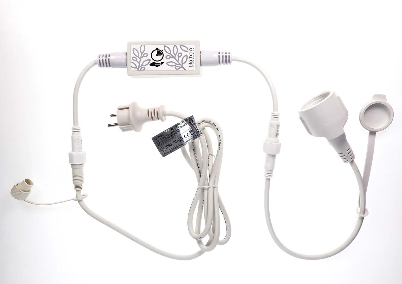 BOITIER TEMPO BLACHERE Temporisation préprogrammée 7h Allumage auto avec l’éclairage public – extinction après 7h.Connectique entrée/sortie Octoplus by BlachereEntré: 230V~50Hz / Sortie: 230V~50Hz – Puissance max 690W – IP66 - 9.7x4.5x3cm