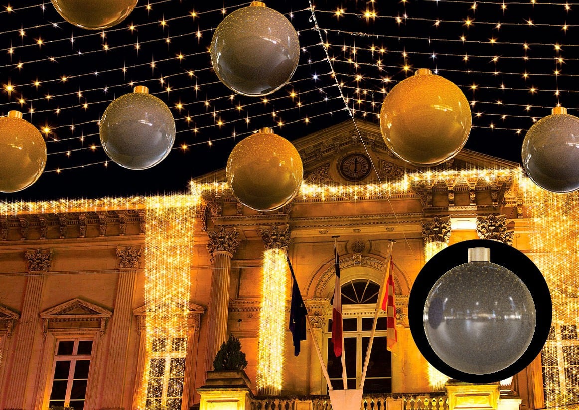 Complétez et sécurisez vos installations lumineuses avec notre sélection d’accessoires : connecteurs, rallonges, fixations… Tout le nécessaire pour une mise en œuvre efficace, durable et adaptée à vos contraintes techniques. 4 boules de diam 0,50 m à gonfler avec un pistolet de gonflage classique - effet métalisé pour décorer des arbres ou suspendre sur divers supports