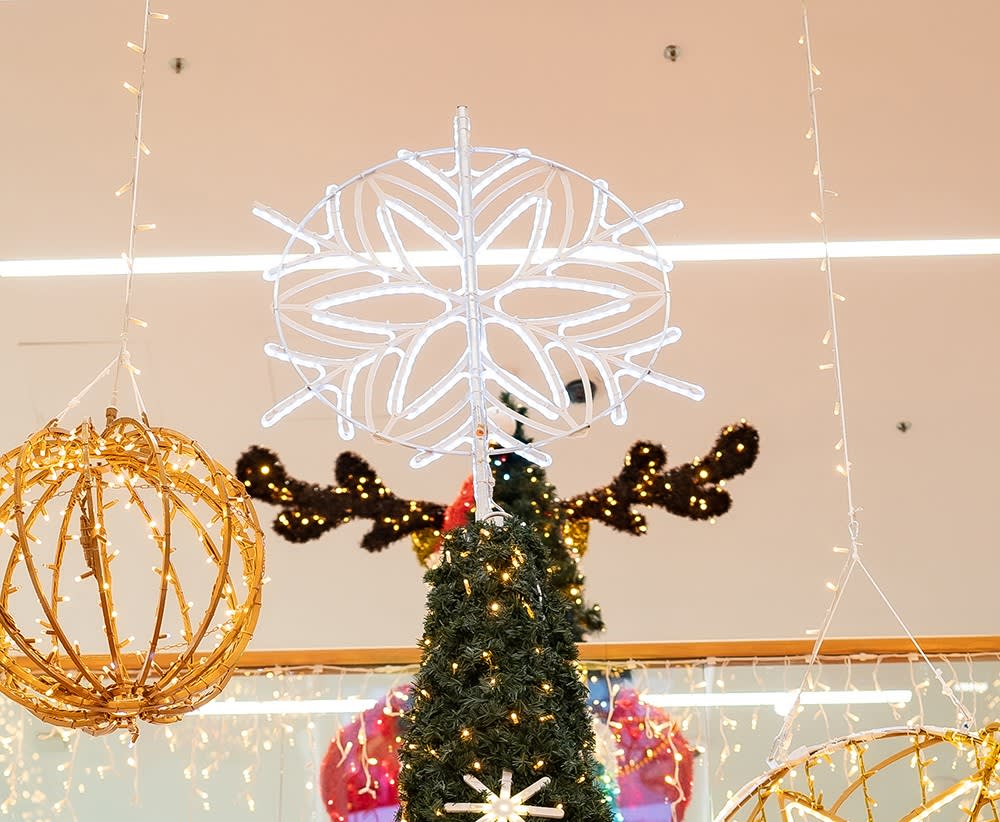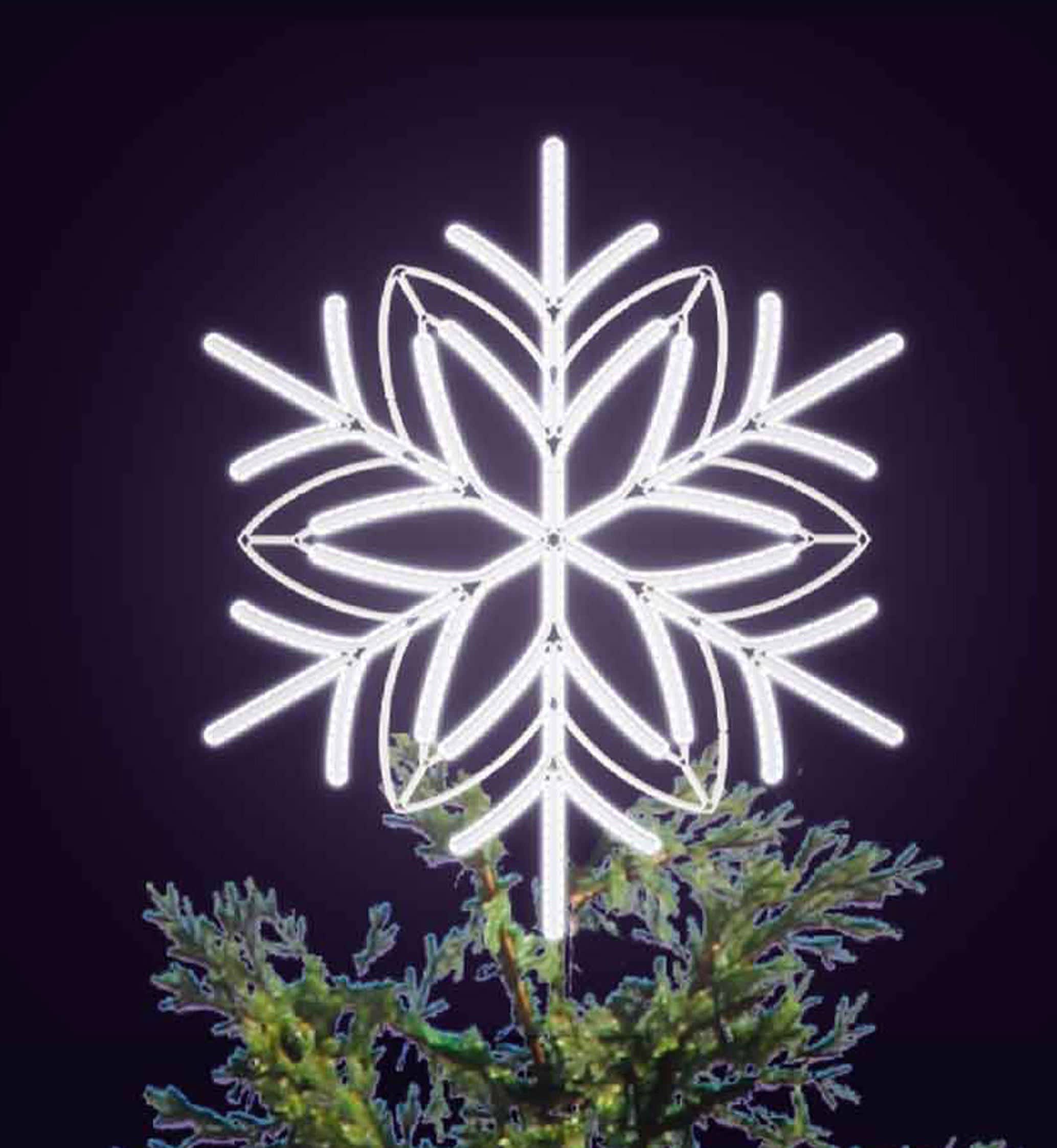 Sublimez vos espaces avec nos décors LED : silhouettes lumineuses, motifs festifs ou éléments scénographiques. Faible consommation, fort impact visuel : ces décors sont conçus pour durer et éblouir, tout en simplifiant l’installation.CIMIER AIGUILLE pour installer à la cime d'un sapin