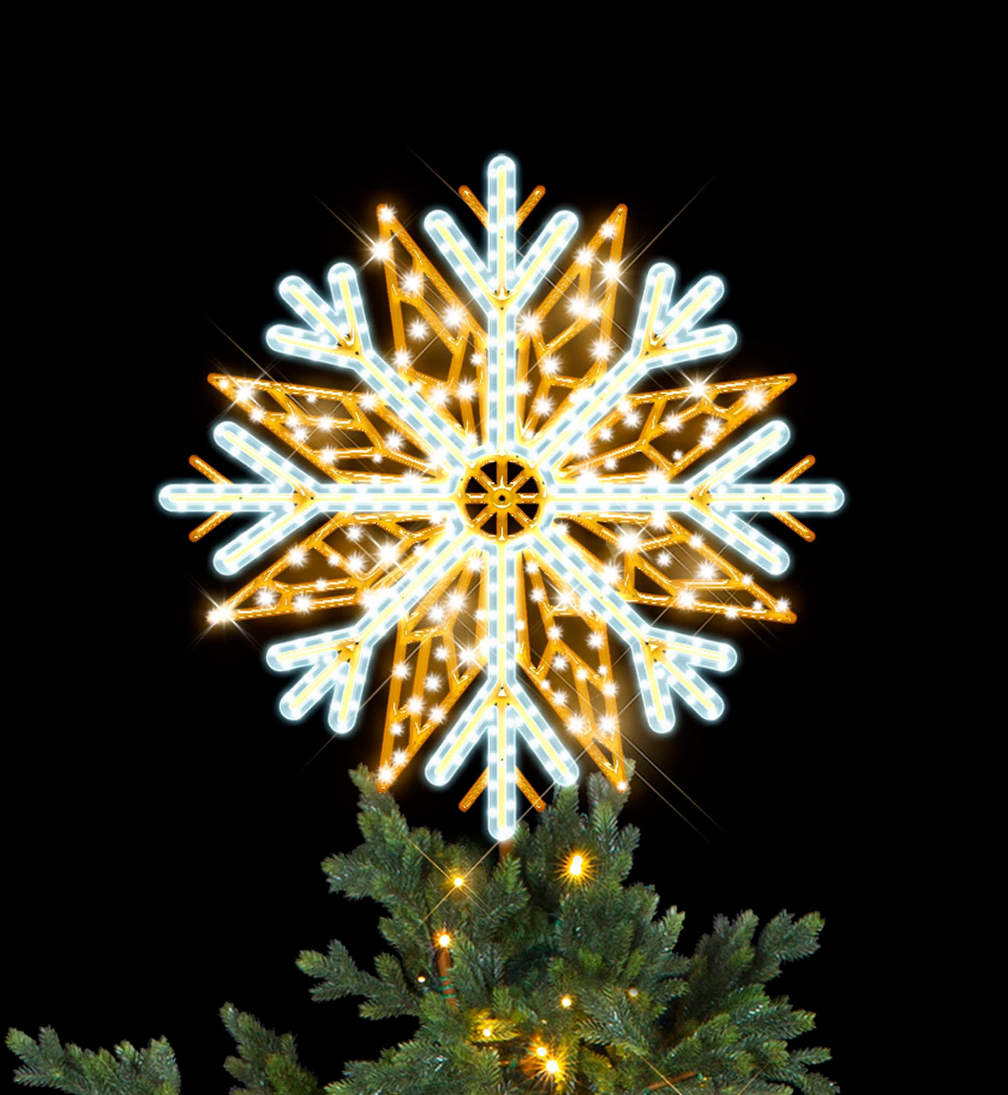 Sublimez vos espaces avec nos décors LED : silhouettes lumineuses, motifs festifs ou éléments scénographiques. Faible consommation, fort impact visuel : ces décors sont conçus pour durer et éblouir, tout en simplifiant l’installation. CIMIER MIA pour installer à la cime d'un sapin