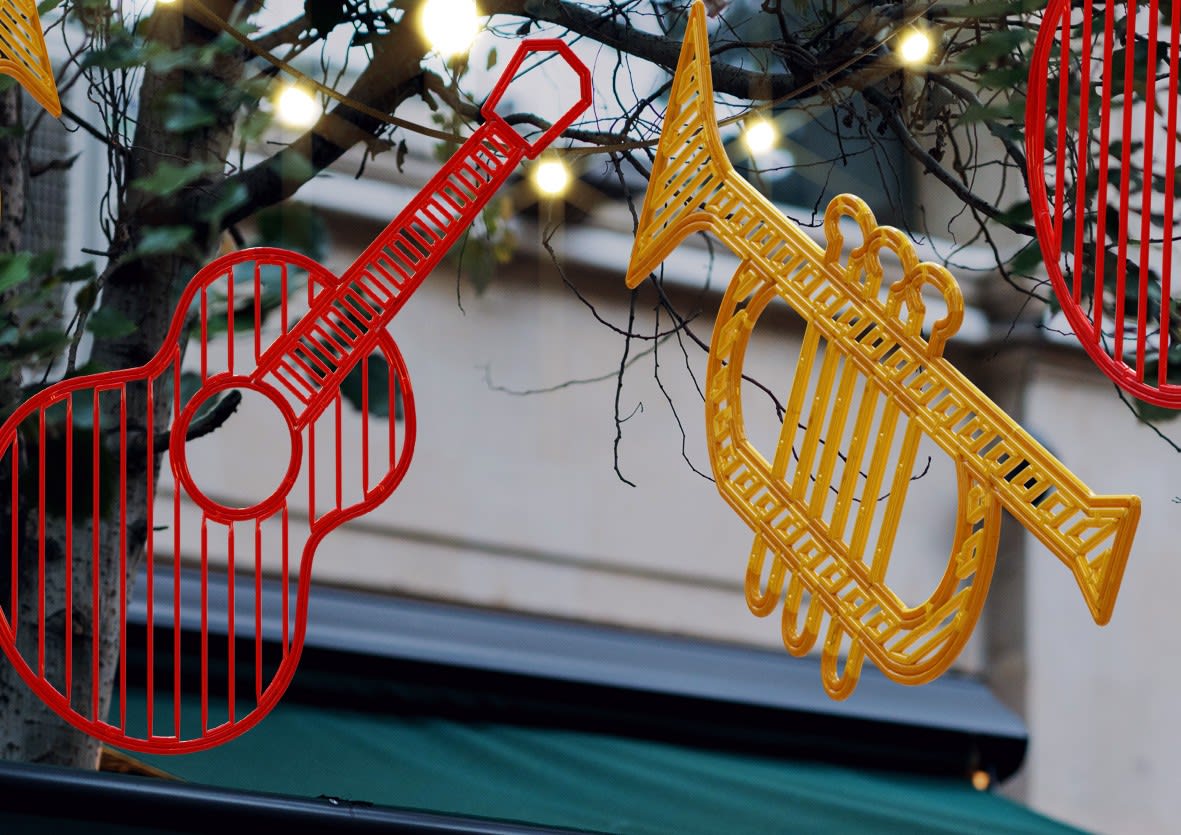 Décor FETE DE LA MUSIQUE - GUITARE SUSPENSION 2D BIOPRINT ROUGE non lumineux