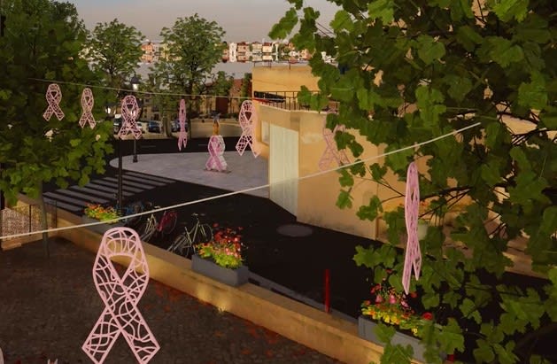 Décor suspension OCTOBRE ROSE non lumineux OCTO1 RUBAN ROSE BIOPRINT