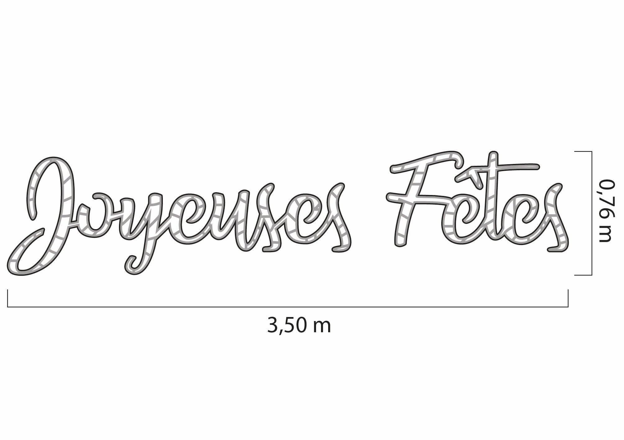 Décor transversal JOYEUSES FETES EN PRINT OR ET FIL LUMIERE LED BLANC CHAUD SUR STRUCTURE ALUMINIUM