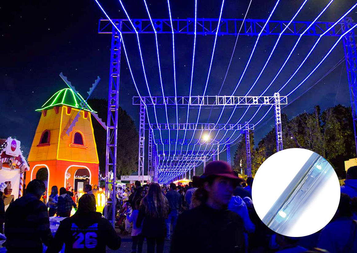 Fil lumière® éco- Bleu - 90m 230V - ø12mm - avec accessoires(4 alimentations 2m sans prise, 5 connecteurs, 5 embouts, colle)-sécable tous les mètres-usage extérieur-l'unité