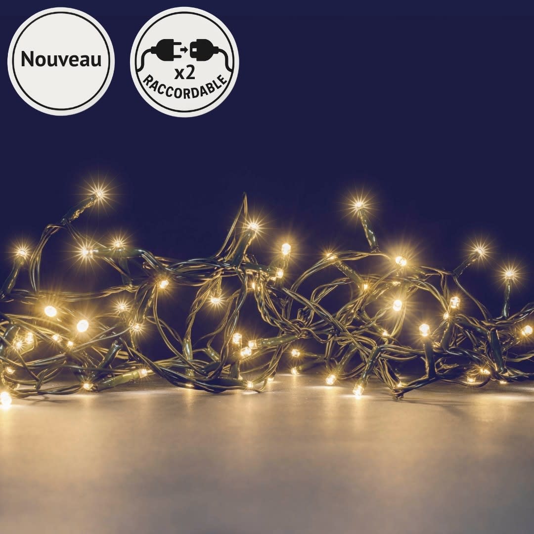 FLICKER LIGHT LED CONNECTABLE 20m blanc chaud animé 8 fonctions connect 2 fois - câble vert