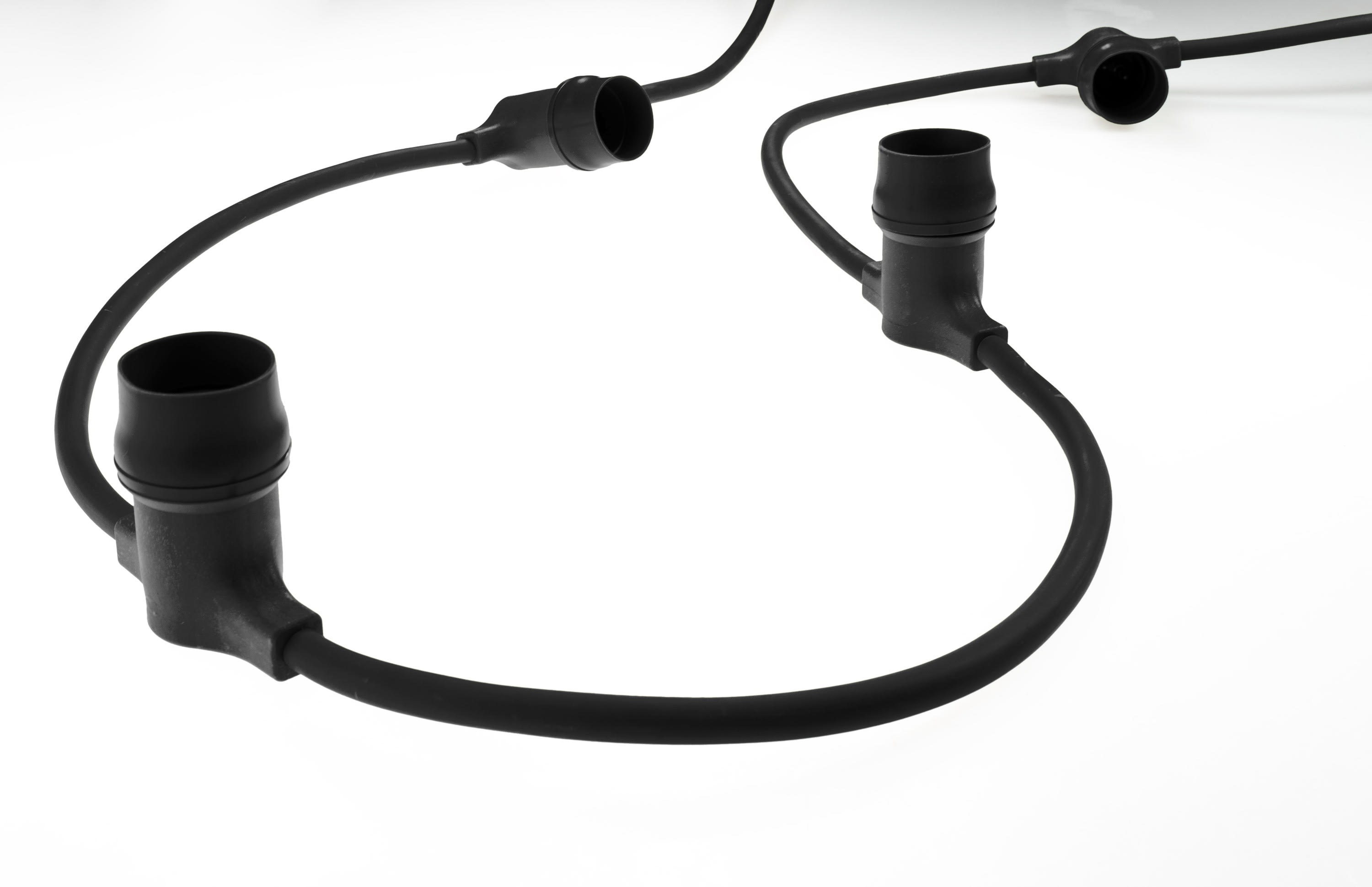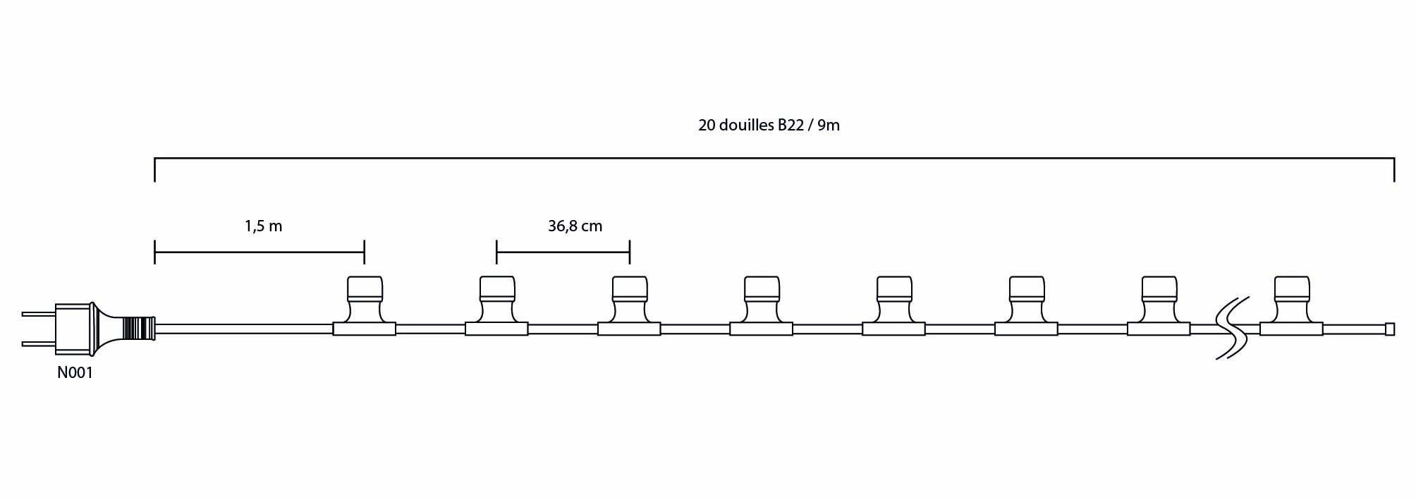 Guirlande de 20 douilles B22(lampes non fournies-10W max)-longueur utile 7m avec fiche IPX4-câble en caoutchouc noir(2x1,5mm2)-usage extérieur