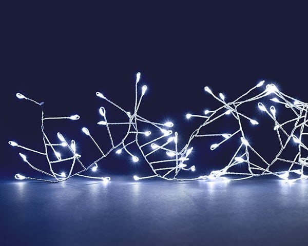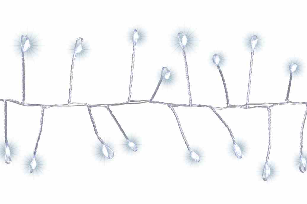 Guirlande 800 MICRO LED GRAPPE Blc -9m 24V - L:9m - 800 micro LED blanc pur - câble argent transparent - 8 fonctions avec mémoire (fixe + 7 animés) - avec 6h timer - usage intérieur & extérieur- l'unité