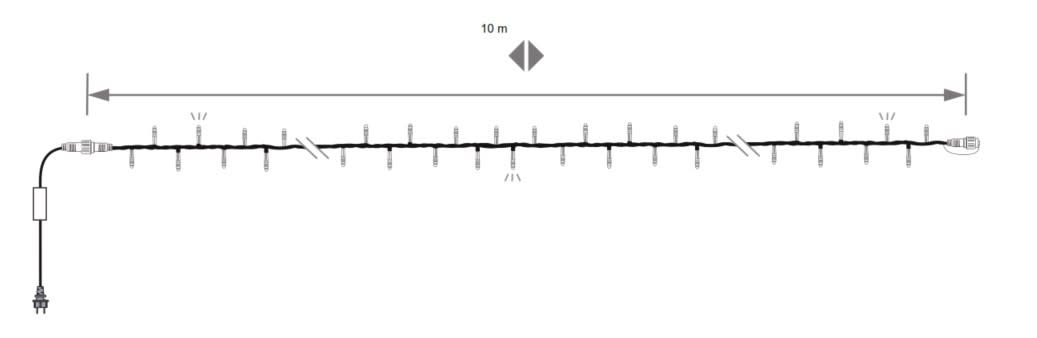 Guirlande LED Blc C&Flash-10m-câble blc 90 led blanc chaud + 10 flash blanc pur-fixe-câble caoutchouc blanc-Octoplus by Blachere-usage extérieur-l'unité