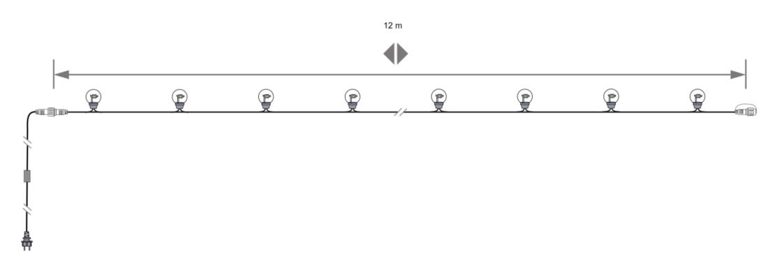 Guirlande LEDMOSPHERE Blanc chd 12m-230V 30 lampes blanc chaud - Fixe - câble en caoutchouc noir -usage extérieur-compatible avec octoplus 230V- l'unité