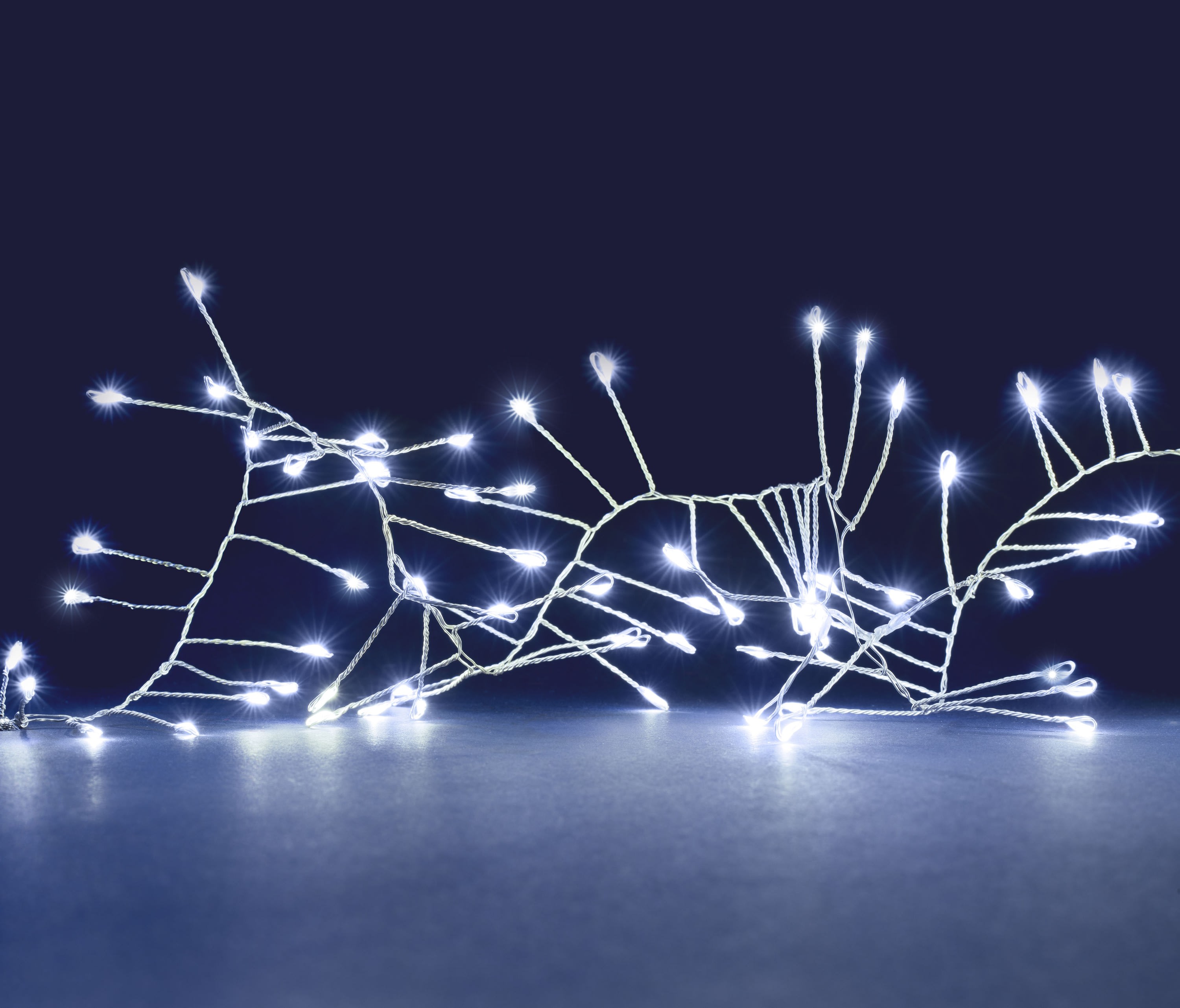 GUIRLANDE MICRO LED GRAPPE - 5m 500 microled blanc pur cable argent intérieur extérieur