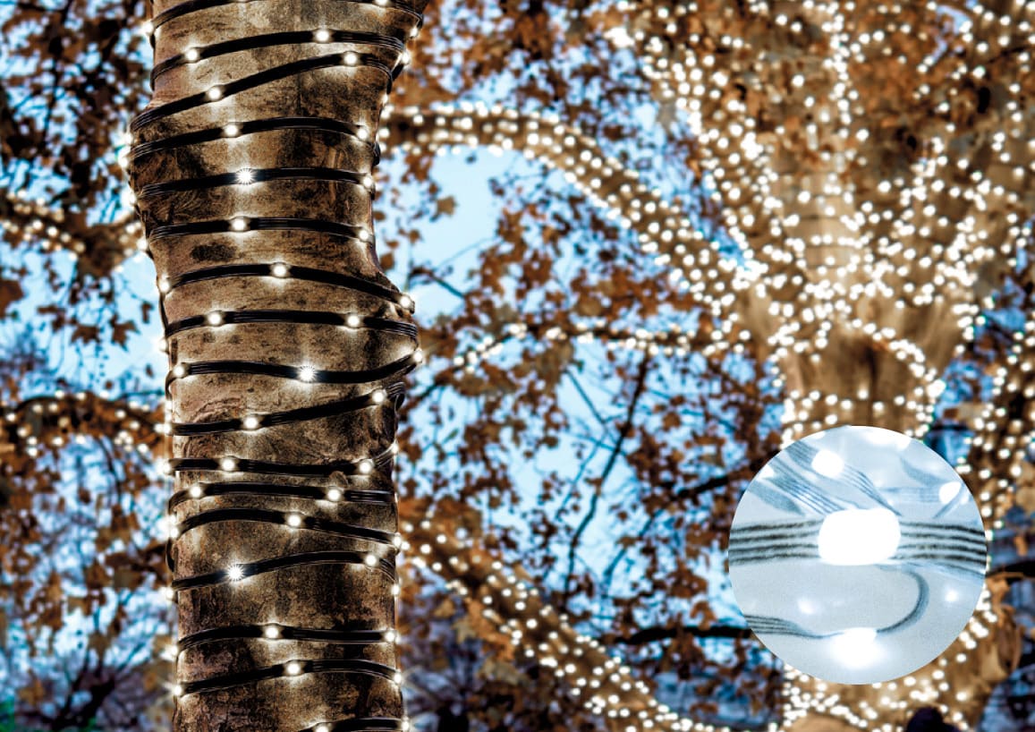 Incontournables des décorations lumineuses, nos guirlandes s’adaptent à tous vos projets. Classiques ou fantaisies, fixes ou animées, elles habillent aussi bien un sapin qu’une façade ou une vitrine. Robustes et modulables, elles conviennent à une utilisation professionnelle en intérieur comme en extérieur. Ultra lumineuse et raccordable 2 x - 24 V pour une installation à portée du public - Vous illuminerez des arbres, pergola, structures diverses