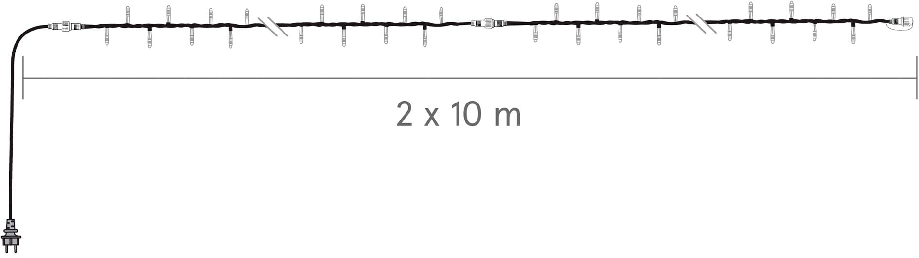 Guirlande SPARK LIGHT flash led-230V-20m 150 led blanc chaud + 50 flash blanc pur (led 100%officielles)-construction 2x10m-câble caoutchouc vert-usage extérieur-l'unité