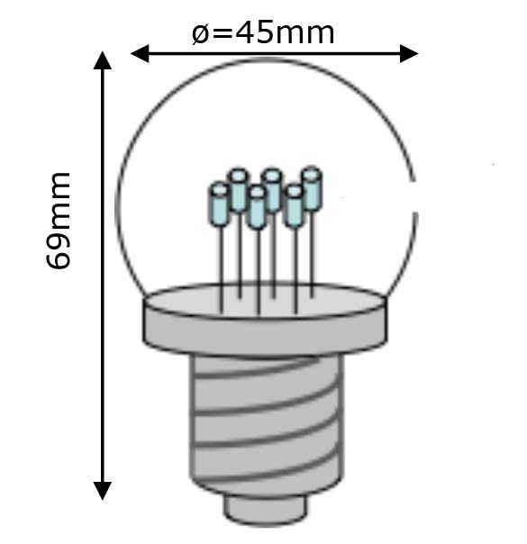 Lampe led filament B22-blc chd -Lot 25pc usage extérieur uniquement sur douille IPX4 minimum-0,5W max/3,68VA-ø45mm 2500~2700K-25+/-2 Lm-lot de 25