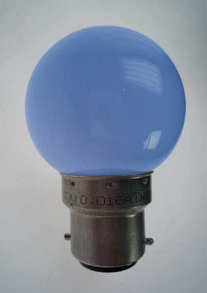 Lampes Led B22 bleu-230V -Lot 25pc usage extérieur uniquement sur douille IPX4 minimum-0,5W max/3,68VA-ø45mm-lot de 25