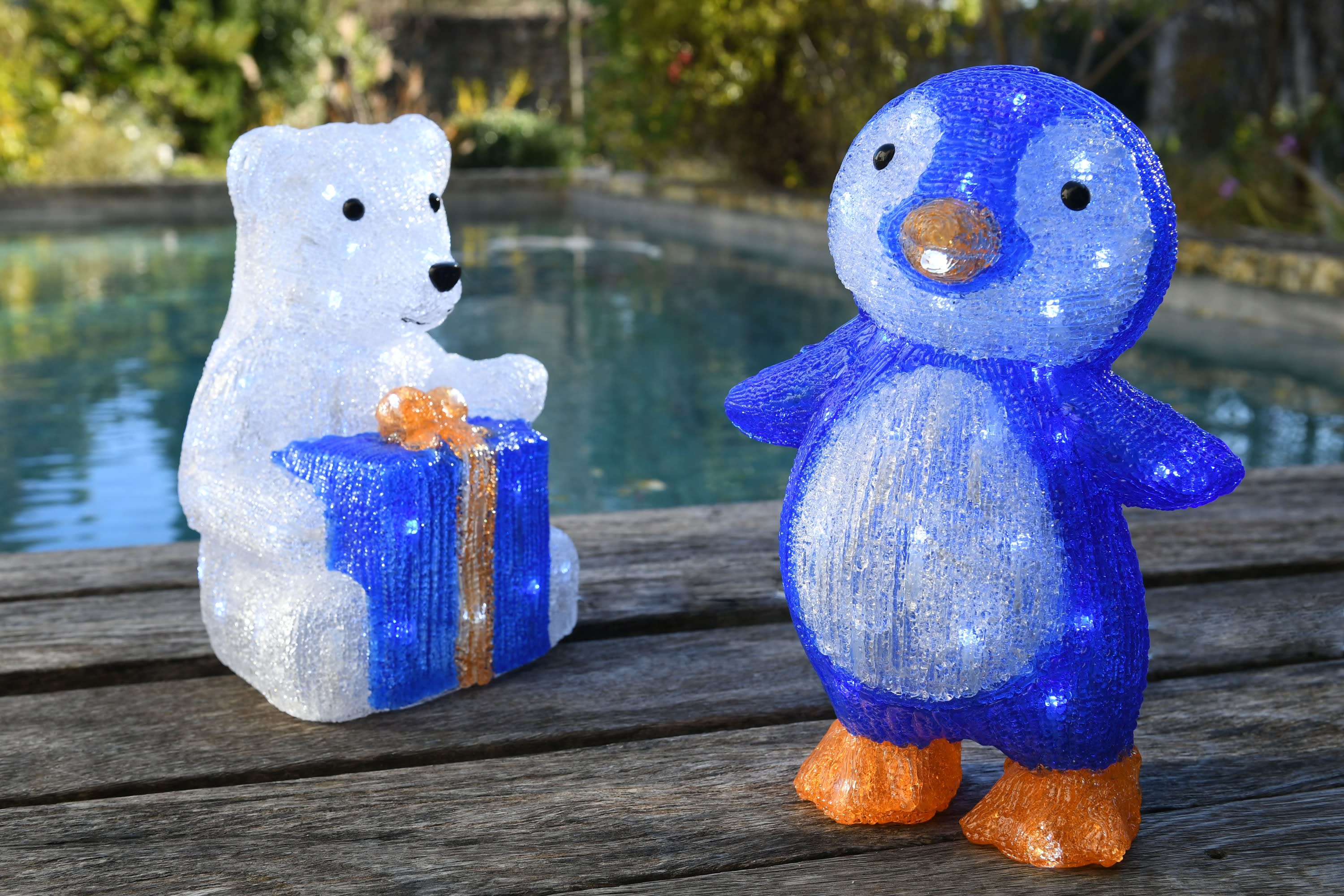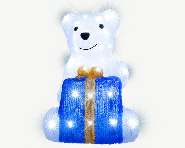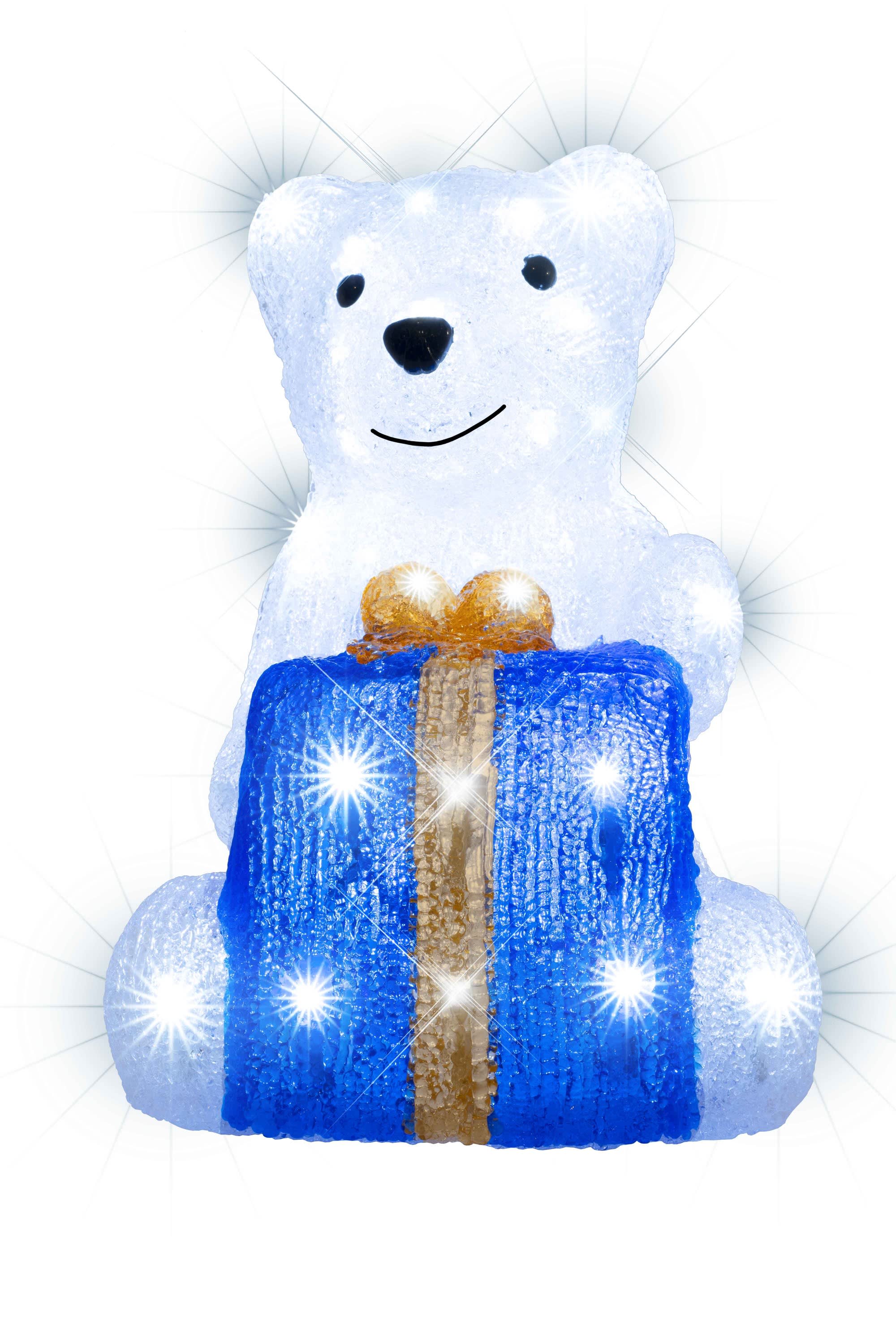 Blachere - Motif acrylique OURS AVEC CADEAU LED 4,5V - 48 LED blanc pur + 12 Flash - JTA043