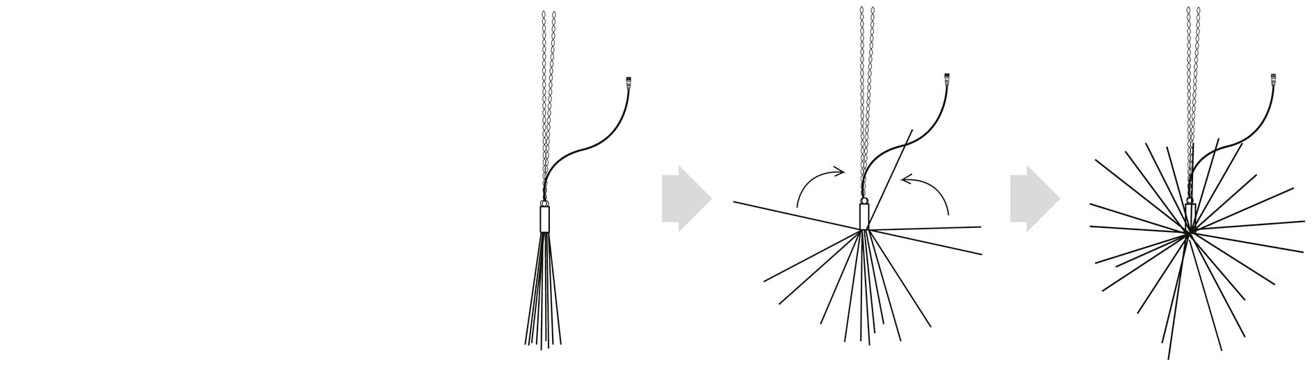 Oursin OR ø80cm - Blanc chaud - 24V(I) 441 led blanc chaud + 63 flash blanc pur, 126 branches - câble wrapped OR- 5m câble avec connecteur male M-C1 Blachere-usage intérieur uniquement - transformateur non fourni-l'unité