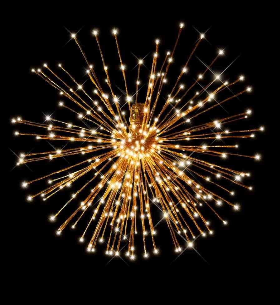 Oursin OR ø80cm - Blanc chaud - 24V(O) 441 led blanc chaud + 63 flash blanc pur, 126 branches - câble wrapped OR- 5m câble avec connecteur male M-C1 Blachere-usage extérieur - transformateur non fourni-l'unité