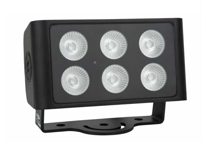 Projecteur RGBW 35W IP65 230V~50Hz - RGBW DMX avec mode manuel6 led x 5W - Câble d’alimentation fourniOption : pilotable avec télécommande infra rouge (distance 3 à 4 m max). Fonctions simples.