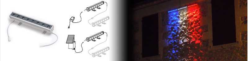 Reglette monocouleur led blanc-8 led haute luminosité-longueur: 50x7,5x6,6cm-enveloppe en aluminium-transformateur PRTR24V non inclus-usage extérieur-l'unité Gamme OPPORTUNITES