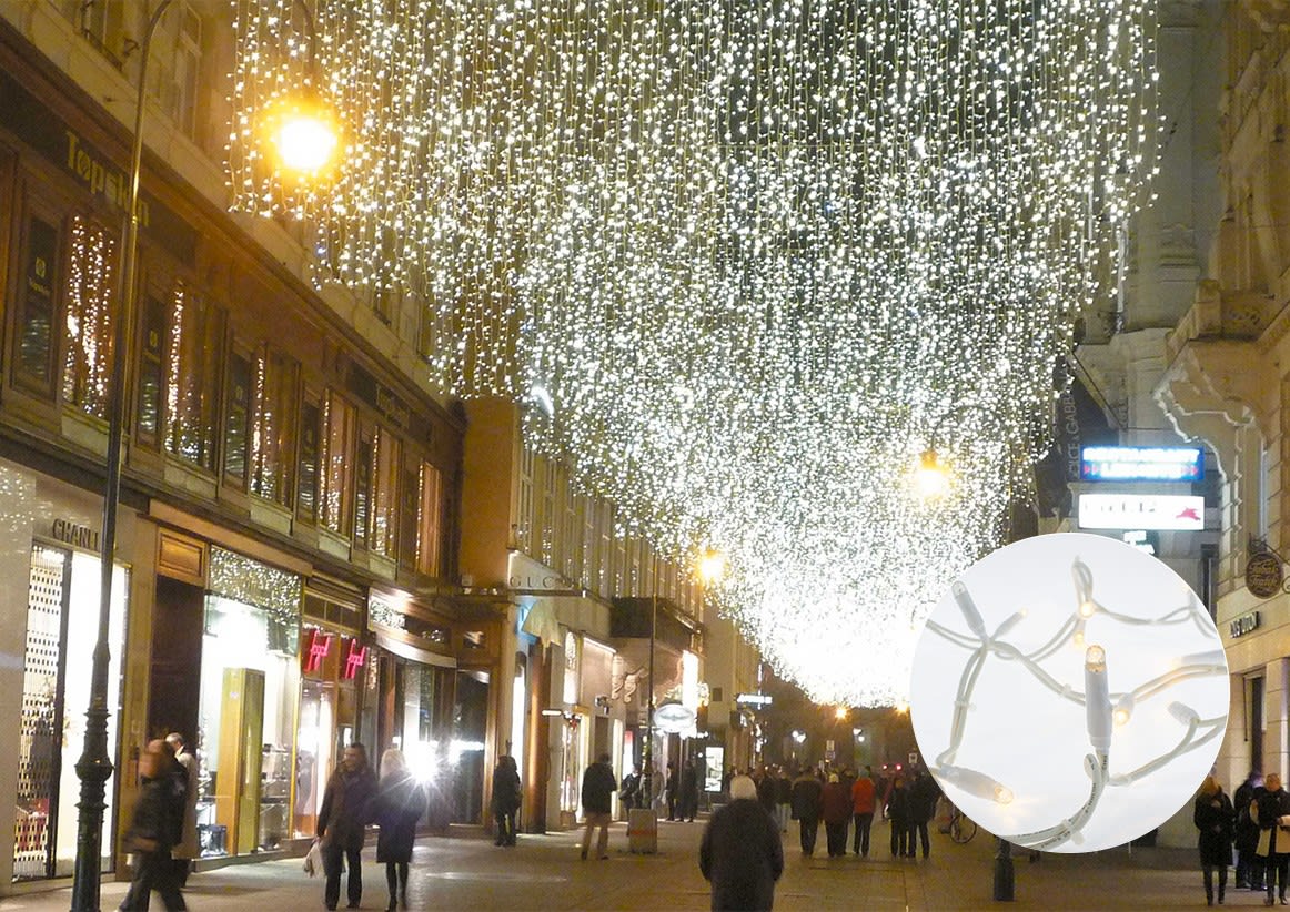 Transformez vos murs et vitrines en surfaces féeriques avec nos rideaux lumineux. Offrant une belle densité lumineuse, ils sont parfaits pour créer un fond lumineux élégant, qu’il soit statique ou animé. Faciles à installer, ils apportent une touche de magie en toute simplicité.Rideau éco pour habiller les façades, illuminer des arbres