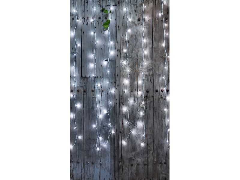RIDEAU FLICKER® 96 LED Blanc pur - 2mx2m 12V - L:2m x H:2m - 96 LED blanc pur - animé 8 fonctions mémoire - câble blanc - usage intérieur & extérieur - connectable 3 fois - l'unité