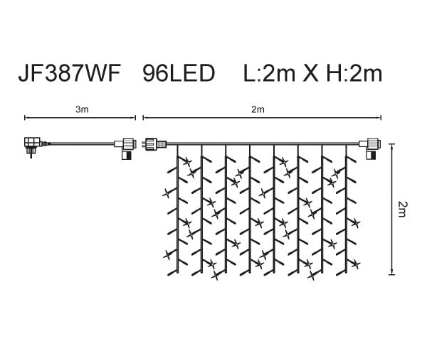 RIDEAU FLICKER® 96 LED Blc C&Flash-2mx2m 12V - L:2m x H:2m - 66 LED blanc chaud + 30 LED blanc pur flash - flash - câble blanc - usage intérieur & extérieur - connectable 3 fois - l'unité