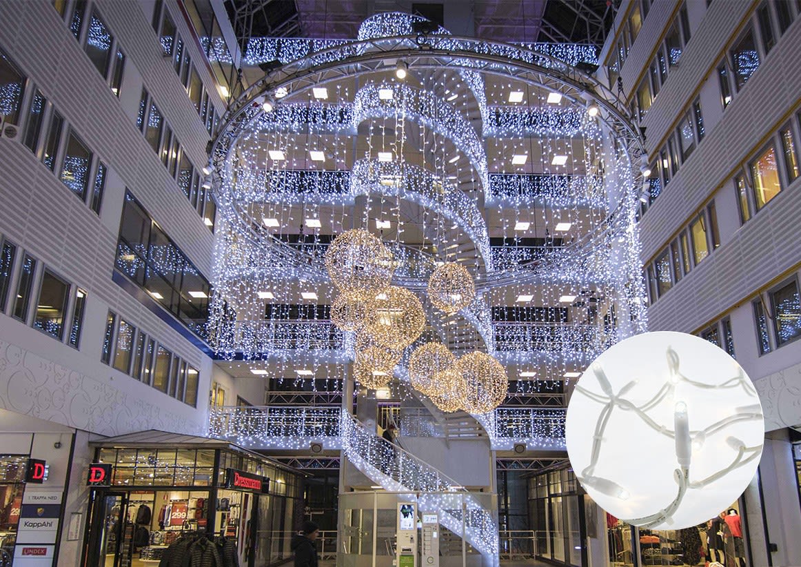 Transformez vos murs et vitrines en surfaces féeriques avec nos rideaux lumineux. Offrant une belle densité lumineuse, ils sont parfaits pour créer un fond lumineux élégant, qu’il soit statique ou animé. Faciles à installer, ils apportent une touche de magie en toute simplicité.Connectable entre eux jusqu'à 9 x (18m sur une seule alimentation) pour couvrir de très longues façades sur une hauteur de 5 m avec une multitude de LED. Avec ce rideau vous pourrez aussi illuminer des arbres de grande taille, des sapins. Couvrir des pergolas, des terrasses, créer des plafond lumineux en intérieur ou en extérieur.