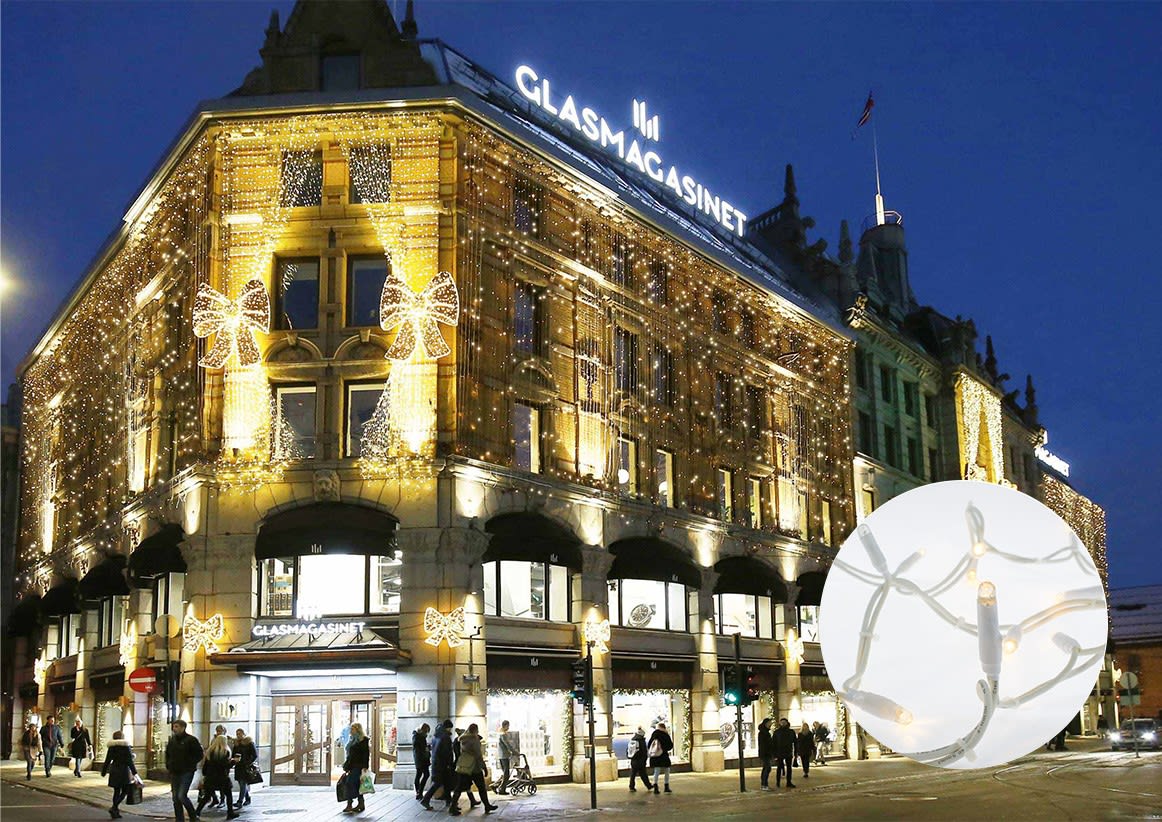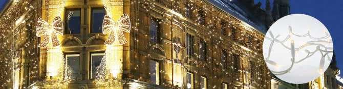 Transformez vos murs et vitrines en surfaces féeriques avec nos rideaux lumineux. Offrant une belle densité lumineuse, ils sont parfaits pour créer un fond lumineux élégant, qu’il soit statique ou animé. Faciles à installer, ils apportent une touche de magie en toute simplicité. Connectable entre eux jusqu'à 13 x (26m sur une seule alimentation) pour couvrir de très longues façades sur une hauteur de 1,5 m pour les brins les plus longs - effet déstucturé, avec une multitude de LED, animation lente aléatoire effet flocon de neige. Idéal pour l'illumination de façade.