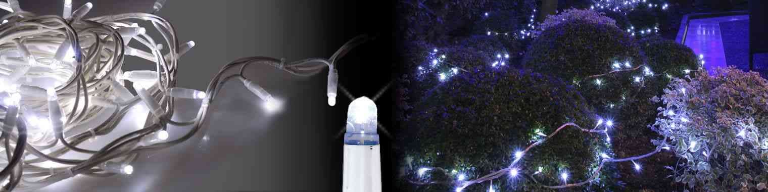 Rideau LED Blanc pur -230V-2x3m 288 led blanc pur-fixe-12 descentes de 3m-câble caoutchouc blanc-Octoplus by Blachere-usage extérieur-l'unité