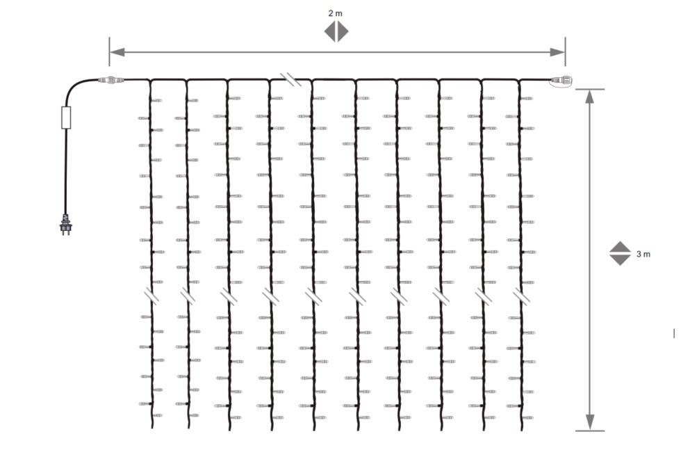 Blachere - Rideau LED Blanc pur -230V-2x3m 288 led blanc pur-fixe-12 descentes de 3m - HL20C1