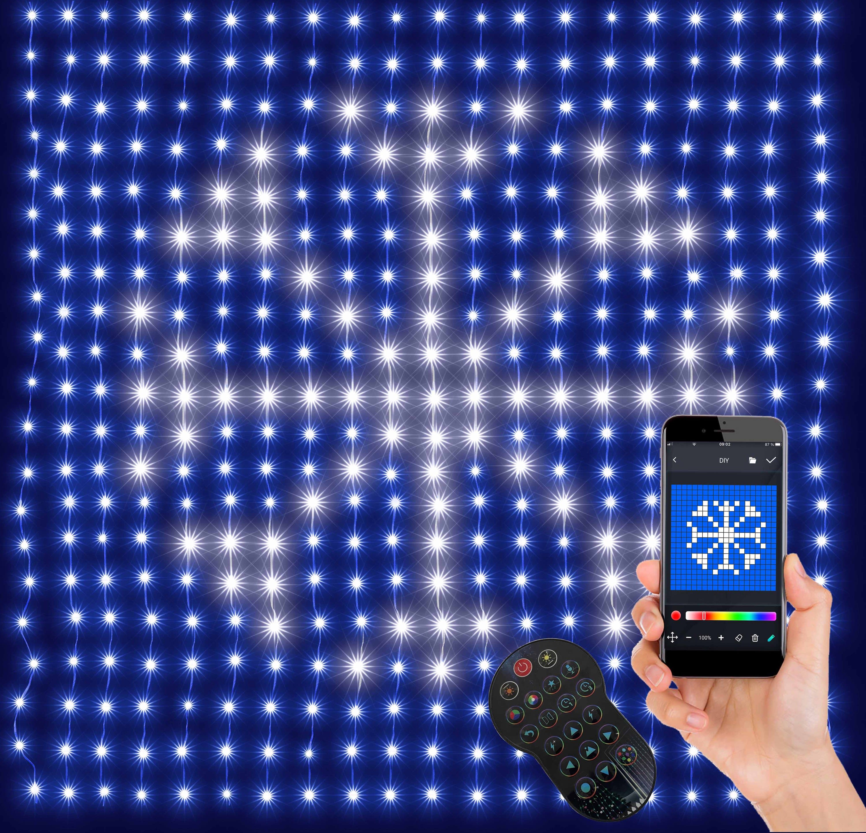 rideau SMART LED RGB 2m x 2 m fixe ou animé 20 program avec télécommande et personnalisable- connectable 3 fois par APP - interieur - extérieur