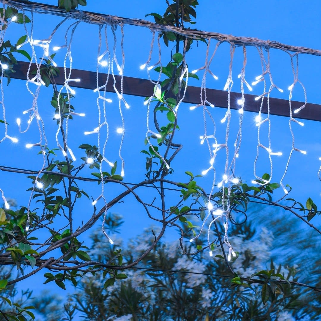 STALACTIT LED CONNECTABLE long 8m haut 0,50 m 160 led blanc pur flash - cable blanc raccordable 3 fois intérieur extérieur