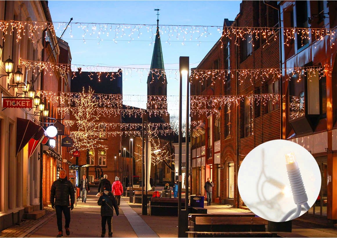 Apportez du relief et du mouvement à vos décorations lumineuses avec nos guirlandes stalactites. Idéales pour souligner un toit, une façade ou une rambarde, elles reproduisent l’effet givré des glaces d’hiver tout en diffusant une lumière douce et festive. Parfaites pour les mises en scène hivernales en intérieur comme en extérieur.Effet garanti ! En bord de toiture, en traversée de rue, en chemin lumineux, ce modèle scintillant lent, et ultra lumineux est simple à installer. raccordable 20 fois pour 90 m de guirlande sur 1 seule alimentation. (alim et pont redresseur vendu séparément)