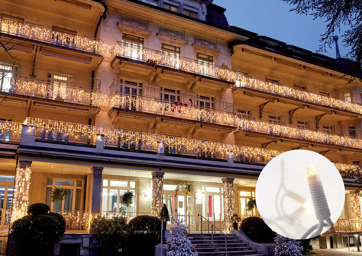 STALACTIT LIGHT® led+ et Flash-230V 4,5m-120 led blanc chaud et 60 slow flash blanc chaud- H max: 0,8m-fixe-câble caoutchouc blanc-Produit fourni sans alimentation, possibilités de raccordement avec les accessoires Octoplus by Blachere.