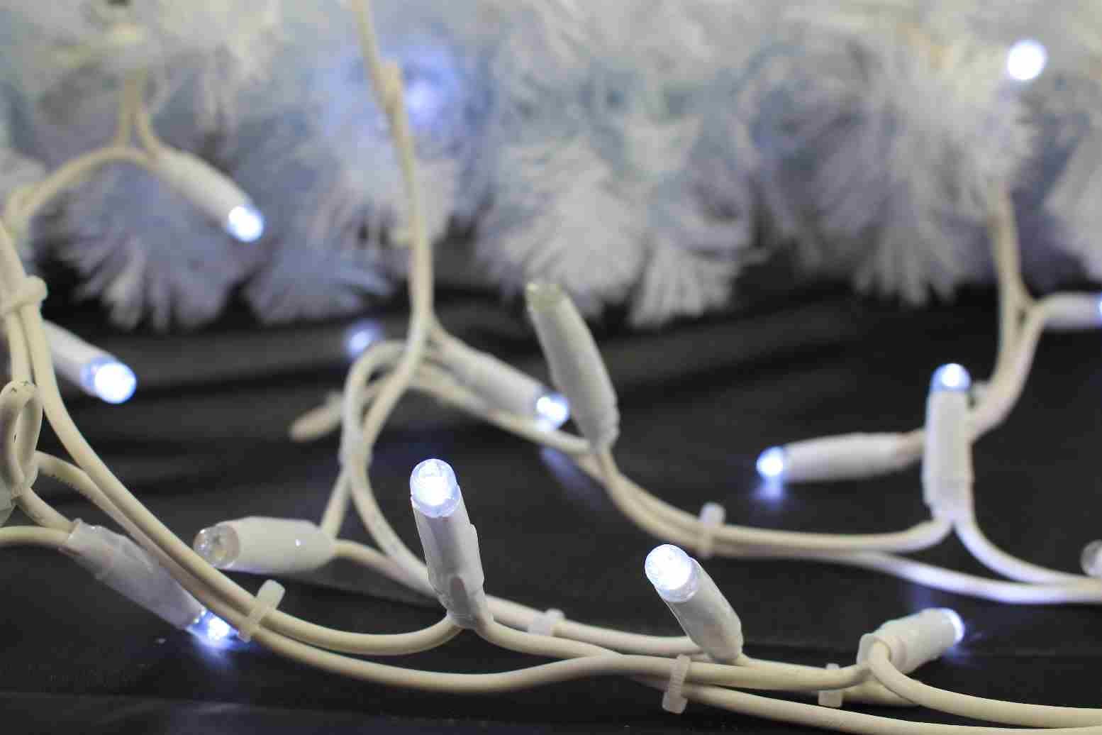 Stalactite pré-illuminée -Blanc pur Guirlande sapin blanc - Longueur: 4,50m composée d'une stalactite de 180led blanc pur + 24flash - Hauteur max: 0,60m- cable caoutchouc blanc - 230V - usage extérieur
