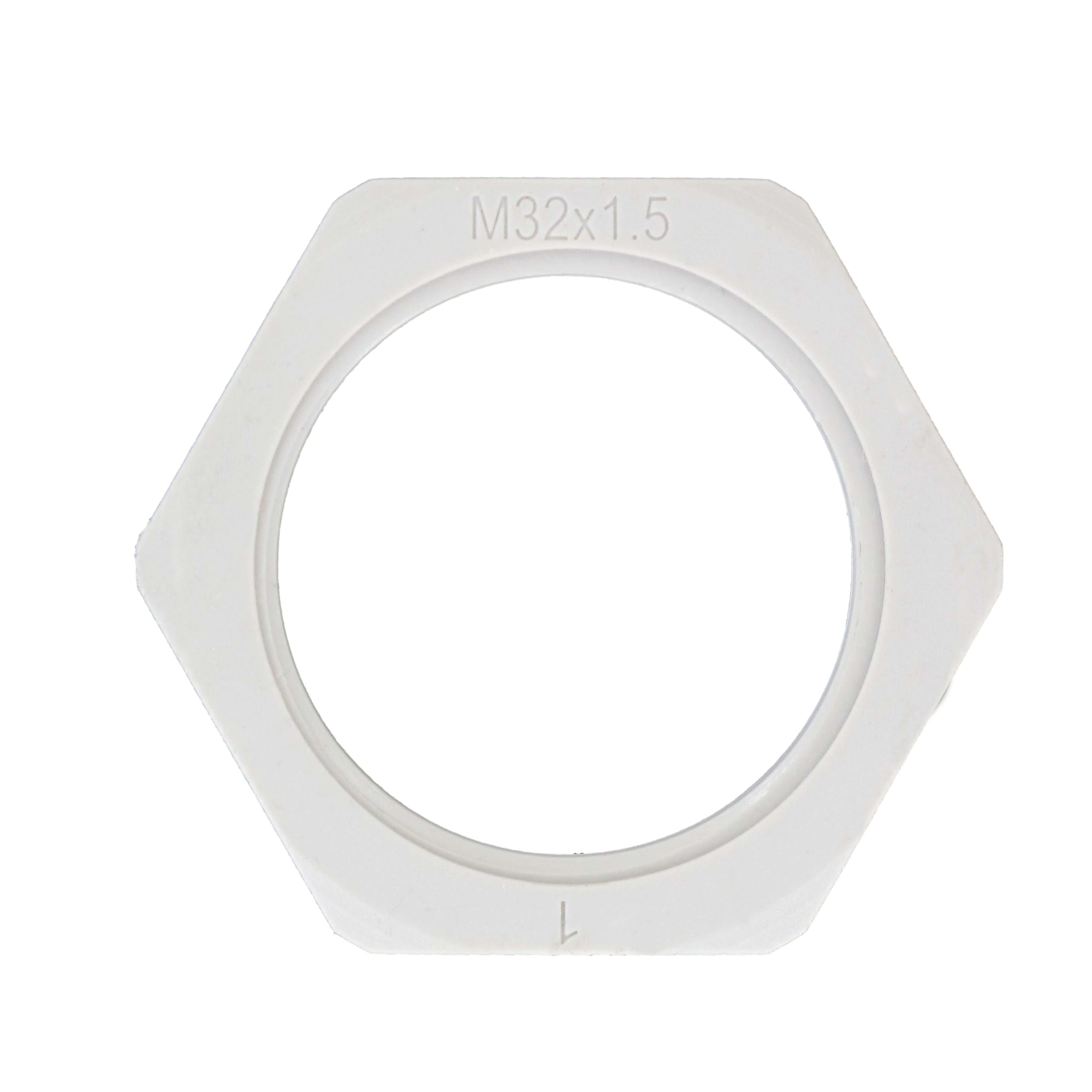 Ecrou hexagonal en Polyamide 6 chargé 30% fibre de verre (sans halogène), filetage ISO 32, couleur gris RAL 7035