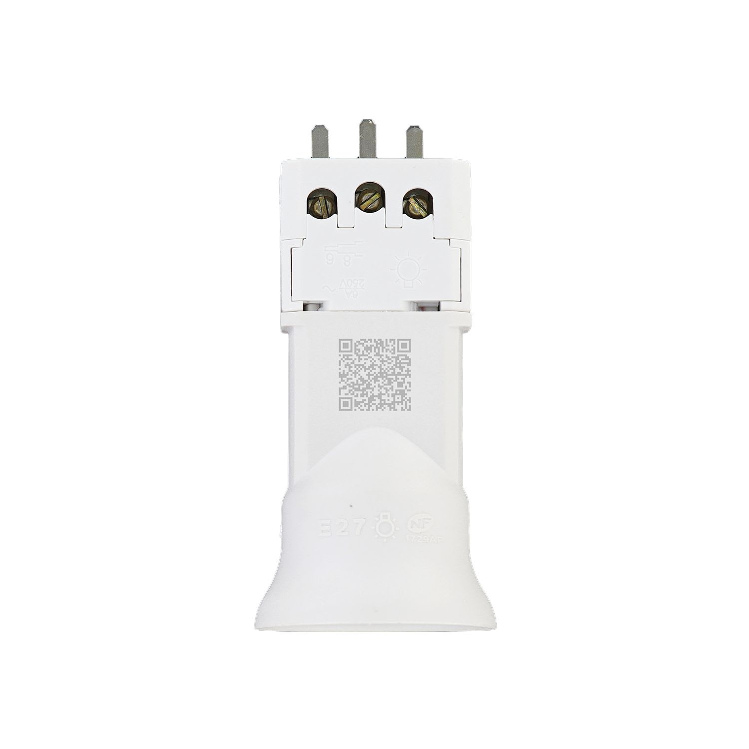 La fiche-douille DCL E27 Compacte est une fiche-douille compatible avec tous les socles DCL du marché. Sa fiche DCL intégrée se démonte très facilement : Flasher le QR code gravé sur le corps de la fiche-douille pour accéder aux informations de démontage.