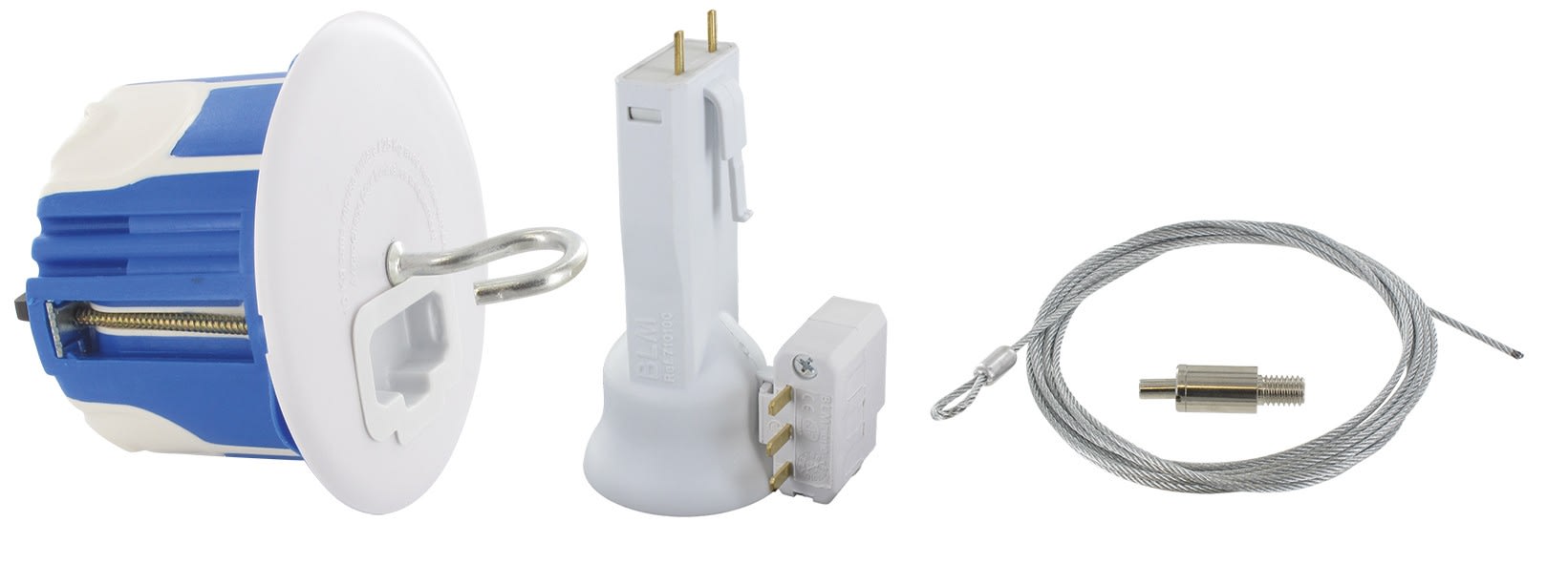 Sa tubulure interne permet aussi d’assurer la reprise sur l’ossature du bâtiment grâce au système de reprise Agrip livré avec (permettant une tenue de 25kg). Livré avec une fiche douille E27.