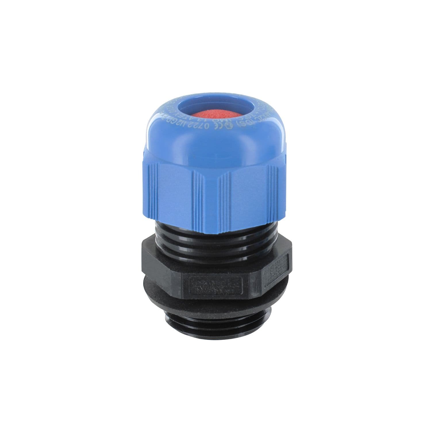 Presse-étoupe ATEX Exi à Lamelles, tenue au choc 4 Joules, en polyamide 6, filetage ISO 20 bis, pour câbles non armés de diamètre 10 à 14 mm, couleur bleu