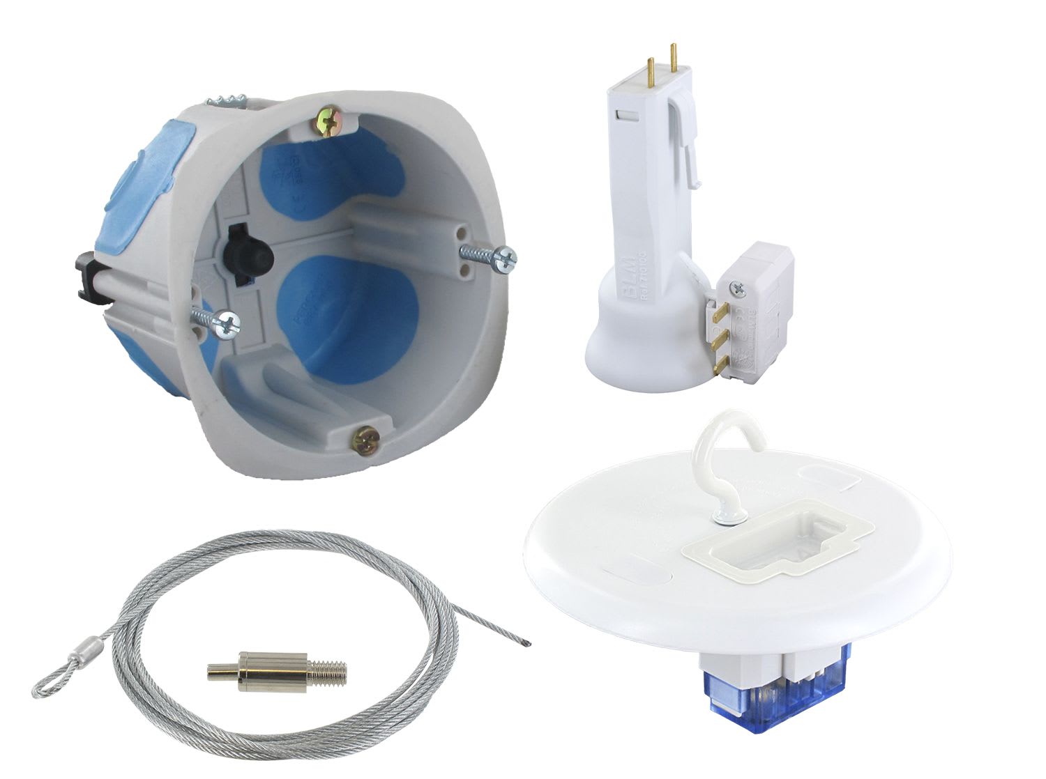 Dans la gamme EASYFIX No Air DCL, une version contenant une fiche douille E27 et une reprise arrière est proposée, permettant ainsi d’avoir l’équipement complet pour une installation « easy » pour des luminaires avec une reprise sur l’ossature du bâtiment
