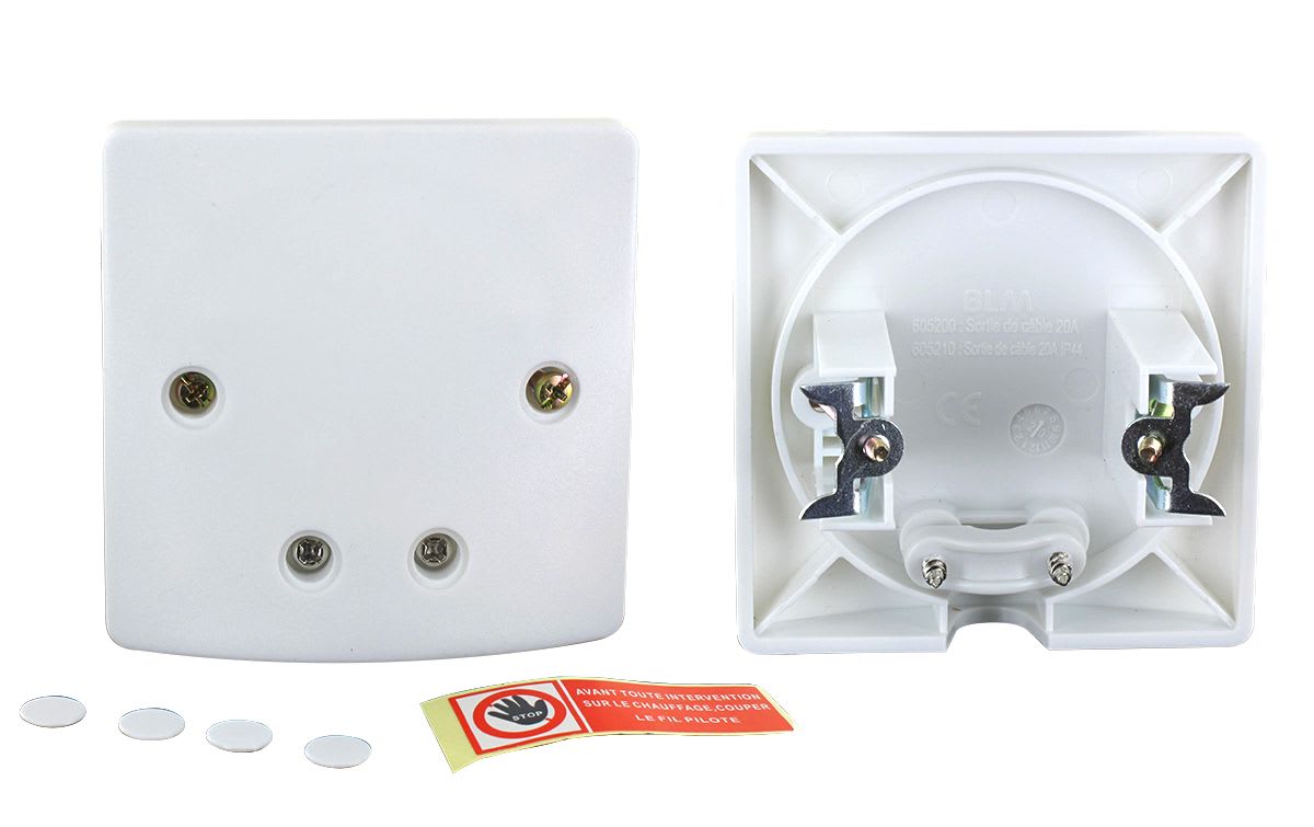 Cette sortie de câble de 20 ampères à griffes est idéale pour la rénovation. Elle est équipée d’une bride de serrage pour câble. Les capots de finition sont fournis.